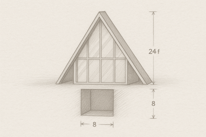 Pictured below are 3 photos of our property as well as 2 sets of 3 artists concepts of our first 2 building plans. The top 3 show a 20 foot by 24 foot imprint on the land for our guest A frames cabins. we will build 1 at a time in close proximity to each other as needed. They will be built over an 8 foot wide by 20 foot long by 8 1/2 foot high shipping container which because the container is buried 8 feet in the ground will provide cool air (55 degrees) to circulate through the building during summer months and relatively warm air (again 55 degree) to need little extra warming during the winter months. The shop will actually consist of 2 40 feet by 8 feet by 8.5 feet tall which will be buried 5 feet into the earth (at 5 feet below ground level the earth is a constant 55 degrees F allowing us to draw that cool air into the rest of the building during summer and allowing to draw that warm air into the containers in the winter. meaning we will only need to use enough energy to get a comfortable environment. What isn't pictured is we will stack a second container on each buried one so the shop entrance will be 11 3/4 feet tall allowing a motorhome etc. to fit inside. We will be enclosing the front and back to make the entire structure weathertight.